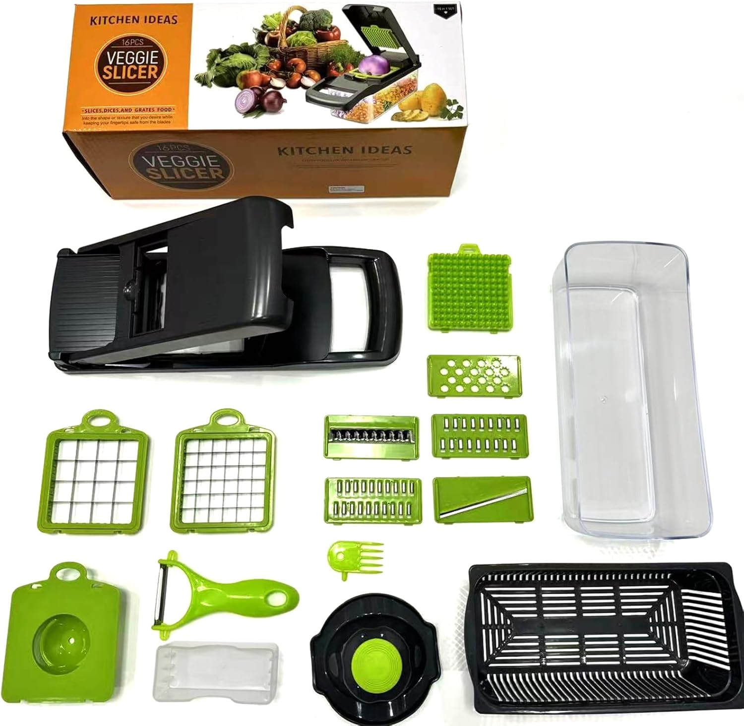 Gemüsehacker Slicer Cutter Chopper 12 In 1 Gemüsehacker Austauschbarer Klingen Mit Colander Korb Und Behälter