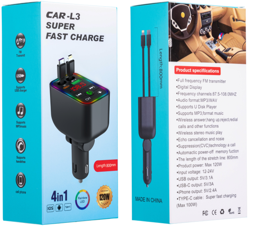 Super Pack 4-in-1 FM-Transmitter Bluetooth Auto + Doppel-Ladegerät Ultra Schnell | Bluetooth Auto Freisprecheinrichtung | Autola